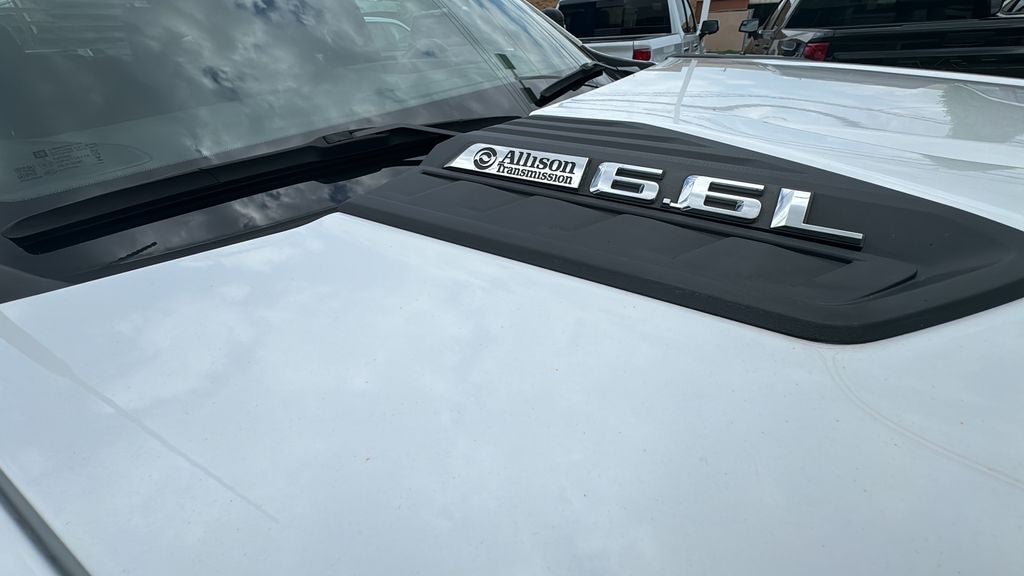 Vehicle factory equipment includes GVWR lowered to 10,000LBS, trailer brake controller, 120V interior power outlet, engine block heater, 730 cold cranking amp aux battery, 6.6L V8 Gas engine, WT Convenience Package that includes deep tinted glass, rear window defogger, cruise control, and heated & power adjustable trailering mirrors. Equipped with all terrain tires, 220 amp alternator, and upfitter switch kit.