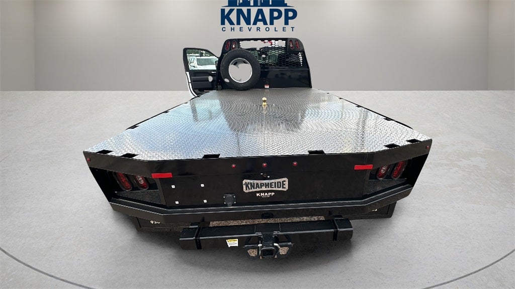Upfit includes 11' Knapheide Steel Gooseneck body with Gooseneck Platform, 3/8" rub rails on each side, formed rear skirt/rear end rail combination 12Ga turnover ball hitch rated at 30,000 lbs maximum gross trailer weight, 7,500lb max tongue weight, includes spring loaded chain retainers built into the floor, complete undercoating, 40.5" high installed bulkhead, platform lights, trailer wiring with 7-way plug located in rear skirt, 2 underbody steel toolboxes 18x18x36", and 2.5" receiver tube