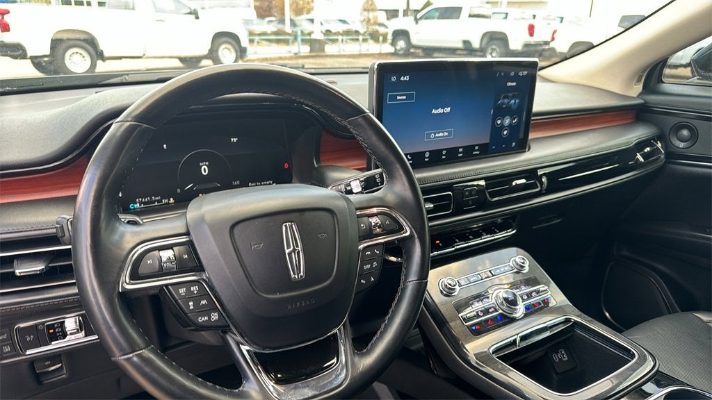 Lincoln Co-Pilot360 1.0 Plus Package (360 Degree Camera w/Rear Camera Wash, Active Park Assist 2.0, Adaptive Cruise Control, Distance Indication & Alert, Evasive Steering Assist, and Forward-Side-Rear Parking Sensors), Luxury Package (Hands-Free Liftgate, Phone As A Key, and Revel Audio System w/13 Speakers), Cargo Utility Package (110V/150W AC Power Outlet, Cargo Compartment w/Reversible Mat, Interior Cargo Cover, Molded Plastic Storage Bins, and Rear Cargo Management System), Equipment Group 200A, 10 Speakers, 3.80 Axle Ratio, 4-Wheel Disc Brakes, ABS brakes, Air Conditioning, Alexa Built-In, Alloy wheels, AM/FM radio: SiriusXM with 360L, Auto High-beam Headlights, Auto tilt-away steering wheel, Auto-dimming door mirrors, Auto-dimming Rear-View mirror, Automatic temperature control, Brake assist, Bumpers: body-color, Compass, Delay-off headlights, Driver door bin, Driver vanity mirror, Dual front impact airbags, Dual front side impact airbags, Electronic Stability Control, Emergency communication system: 911 Assist, Four wheel independent suspension, Front anti-roll bar, Front Bucket Seats, Front Center Armrest w/Storage, Front dual zone A/C, Front reading lights, Fully automatic headlights, Garage door transmitter: HomeLink, Heated door mirrors, Heated front seats, Heated rear seats, Heated steering wheel, Illuminated entry, Knee airbag, Leather steering wheel, Low tire pressure warning, Memory seat, Navigation System, Occupant sensing airbag, Outside temperature display, Overhead airbag, Overhead console, Panic alarm, Passenger door bin, Passenger vanity mirror, Power door mirrors, Power driver seat, Power Liftgate, Power moonroof: Panoramic Vista Roof, Power passenger seat, Power steering, Power windows, Prem Lthr-Trimmed Heated/Ventilated Captain Seats, Radio data system, Radio: AM/FM/HD Audio System, Rain sensing wipers, Rear anti-roll bar, Rear reading lights, Rear seat center armrest, Rear window defroster, Rear window wiper, Remote keyless entry, Satin Roof Rack Side Rails w/o Crossbars, Security system, Speed control, Speed-sensing steering, Speed-Sensitive Wipers, Split folding rear seat, Spoiler, Steering wheel memory, Steering wheel mounted A/C controls, Steering wheel mounted audio controls, SYNC 4 w/Enhanced Voice Recognition, Tachometer, Telescoping steering wheel, Tilt steering wheel, Traction control, Trip computer, Turn signal indicator mirrors, Variably intermittent wipers, Ventilated front seats, and Wheels: 18 Premium Painted Bright Machined Alum.