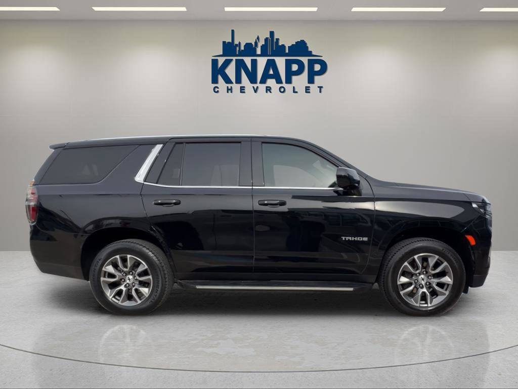 CARFAX One-Owner. Clean CARFAX. Black 2023 Chevrolet Tahoe LS RWD 10-Speed Automatic with Overdrive EcoTec3 5.3L V8FULLY SERVICED, Jet Black Cloth.Odometer is 10337 miles below market average!License Plate Front Mounting Package, Preferred Equipment Group 1LS (1st & 2nd Row Color-Keyed Carpeted Floor Mats, Color-Keyed Carpeting Floor Covering, Driver & Front Outboard Passenger Airbags, Floor Console w/Storage Area, LED Daytime Running Lamps, Remote Start, SiriusXM Radio w/360L, and Wrapped Steering Wheel), Jet Black Cloth, 3.23 Rear Axle Ratio, 3rd row seats: split-bench, 4-Wheel Disc Brakes, 6 Speakers, 6-Speaker Audio System Feature, ABS brakes, Air Conditioning, Alloy wheels, AM/FM radio: SiriusXM with 360L, Apple CarPlay/Android Auto, Auto High-beam Headlights, Automatic temperature control, Brake assist, Bumpers: body-color, Compass, Delay-off headlights, Driver door bin, Driver vanity mirror, Dual front impact airbags, Dual front side impact airbags, Electronic Stability Control, Emergency communication system: OnStar and Chevrolet connected services capable, Four wheel independent suspension, Front anti-roll bar, Front Bucket Seats, Front Center Armrest, Front dual zone A/C, Front High-Back Reclining Bucket Seats, Front reading lights, Fully automatic headlights, Heated door mirrors, Illuminated entry, Infotainment Display, Low tire pressure warning, Occupant sensing airbag, Outside temperature display, Overhead airbag, Overhead console, Panic alarm, Passenger door bin, Passenger vanity mirror, Power door mirrors, Power driver seat, Power passenger seat, Power steering, Power windows, Premium Cloth Seat Trim, Premium Smooth Ride Suspension, Radio: Chevrolet Infotainment 3 System, Rain sensing wipers, Rear air conditioning, Rear anti-roll bar, Rear reading lights, Rear seat center armrest, Rear window defroster, Rear window wiper, Remote keyless entry, Roof rack: rails only, Security system, Speed control, Speed-sensing steering, Split folding rear seat, Spoiler, Steering wheel mounted audio controls, Tachometer, Telescoping steering wheel, Tilt steering wheel, Traction control, Trip computer, Variably intermittent wipers, Vertical Cargo Net (LPO), Voltmeter, Wheels: 18 x 8.5 Bright Silver Painted Aluminum, and Wheels: 20 x 9 Painted Aluminum.